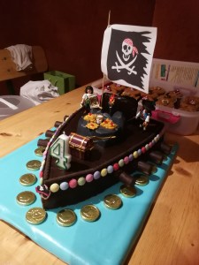 Zum Kindergeburtstag gehört natürlich ein eben mal schnell selbstgebackener Piratenschiff-Kuchen (mit Playmobil-Deko)! Äh, nicht.
