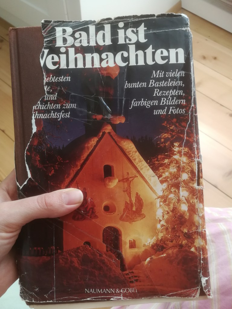 Als ich ein Kind war, holte meine Mutter jedes Jahr im Dezember dieses zerfledderte Weihnachtsbuch aus einer Kiste. Ich kann mich bis heute an die Bilder von Sankt Martin, Nikolaussocken und eingeschneiten Kirchen darin erinnern. Dann fiel es mir kürzlich in die Hände.